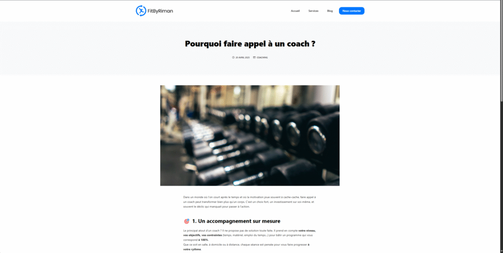 Pour valoriser encore davantage l’expertise de FitByRiman, j’ai créé une page Blog.